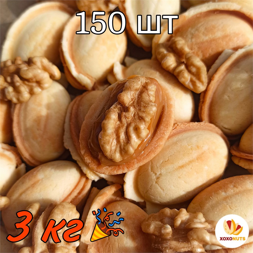 Орешки с вареной сгущенкой из цельного коровьего молока и грецким орехом премиум класса 3кг 150шт песочное печенье XOXONUTS